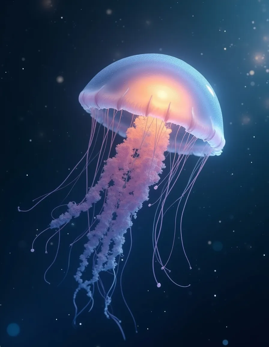 Spawned within the Helix Nebula’s nursery currents, imprinted with the memory of collapsing gas clouds and newborn stars; learned navigation by tasting electromagnetic tides and gravitational ripples, guided by elder jellyfish who taught the art of reading the universe’s pulse.